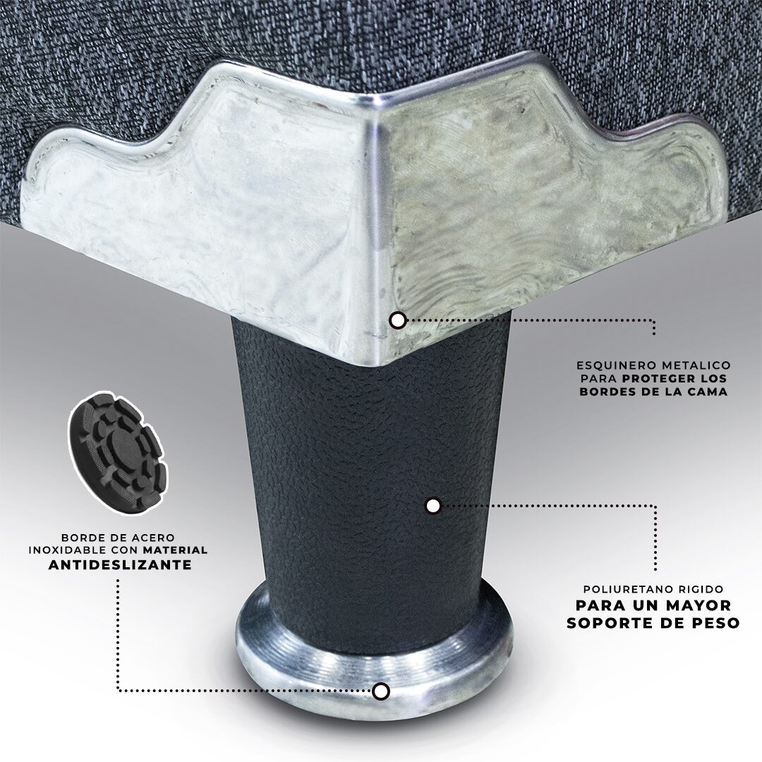 Fabricada con madera de pino reforestado, completamente seca e inmunizada para preservar su pureza natural, nuestra base cama cuida el planeta y tu descanso. ofreciendo una estructura estable y libre de plagas. Con una garantía de hasta 5 años, tienes la tranquilidad de una inversión sólida.