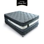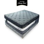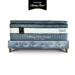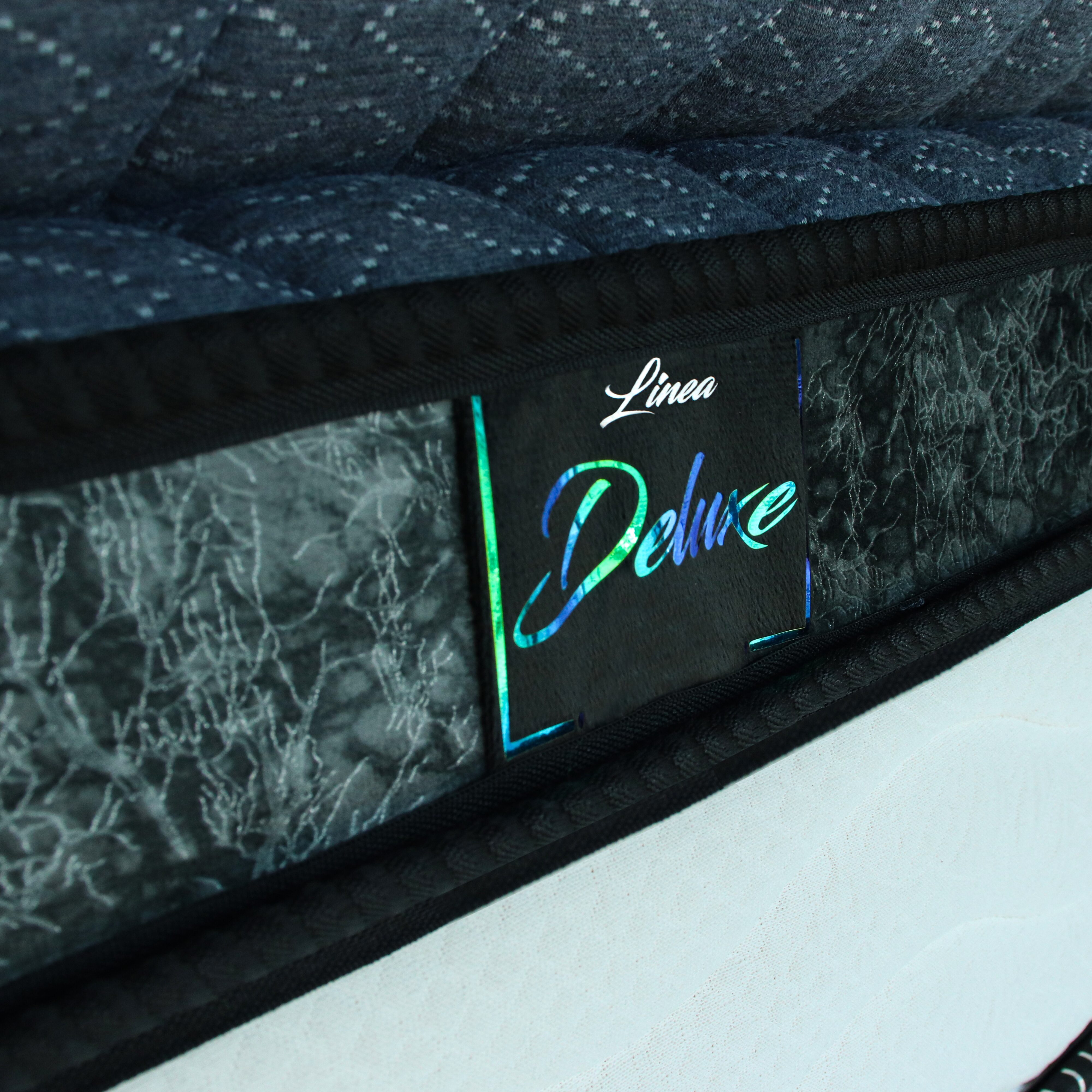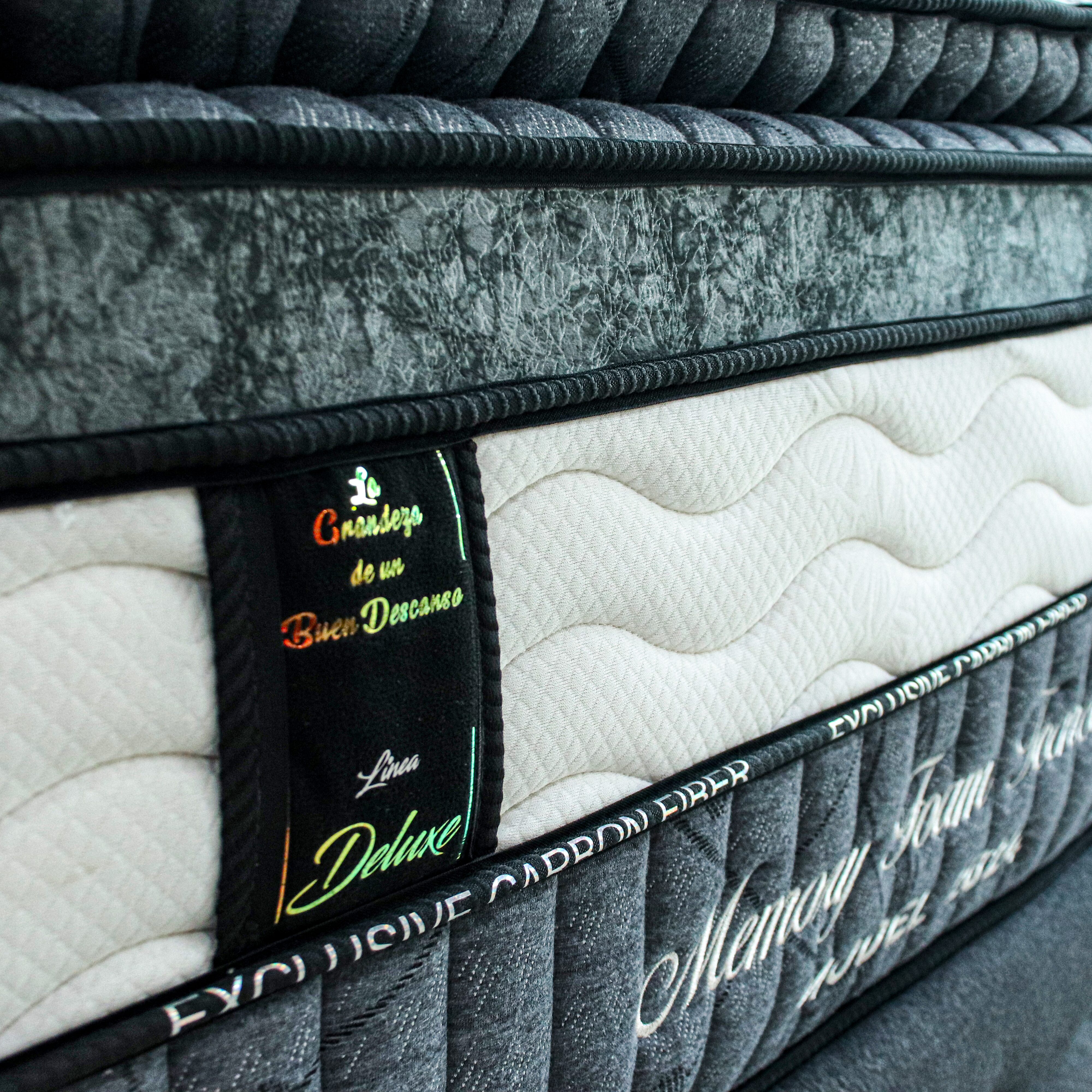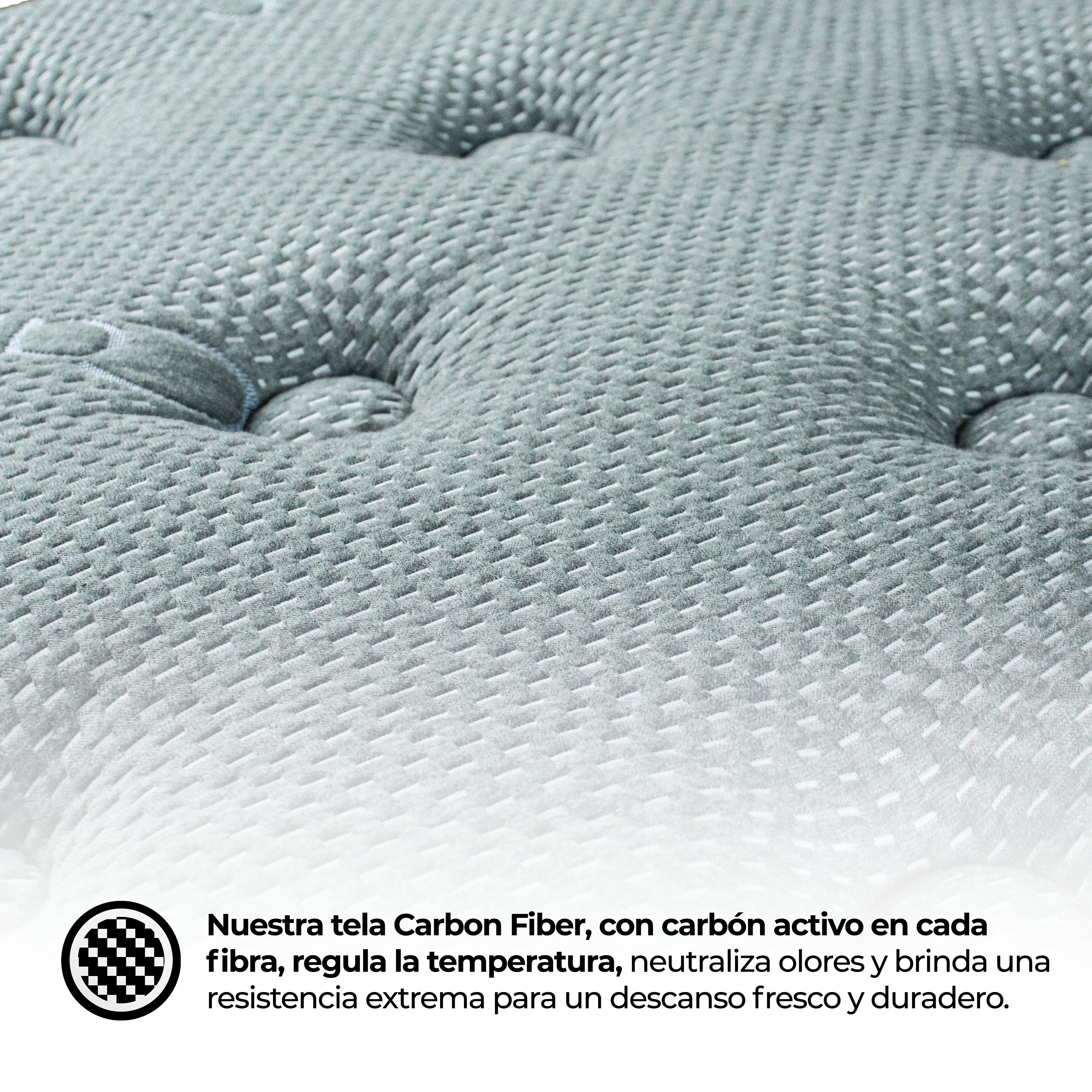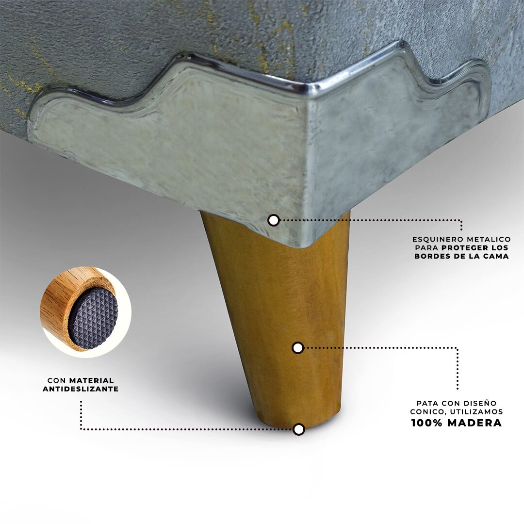 El combo incluye una cama base fabricada en pino reforestado, tapizada con el color y textura que prefieras. Garantía de 18 años para el colchón y 5 años para la cama base. Un conjunto pensado para quienes no aceptan menos que lo mejor en descanso, diseño y durabilidad.