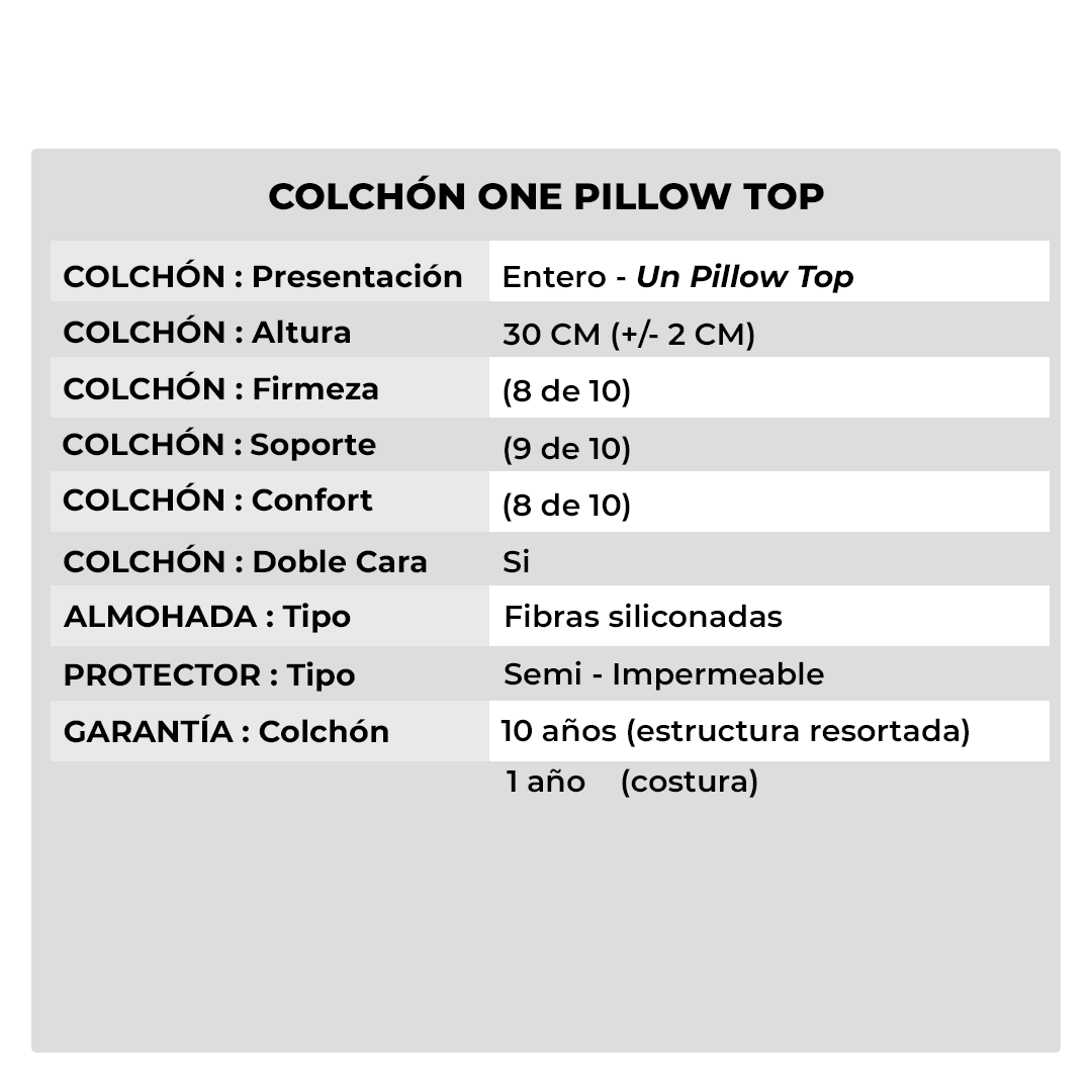 Con un nivel extra de suavidad y soporte, este colchón cuenta con la innovadora espuma anatómica viscoelástica. Experimenta la sensación envolvente de esta tecnología avanzada que se adapta a la forma única de tu cuerpo, brindándote un descanso personalizado y renovador. Descubre el placer de dormir en la cima del confort con nuestro colchón Pillow Top: el toque perfecto para noches de ensueño.