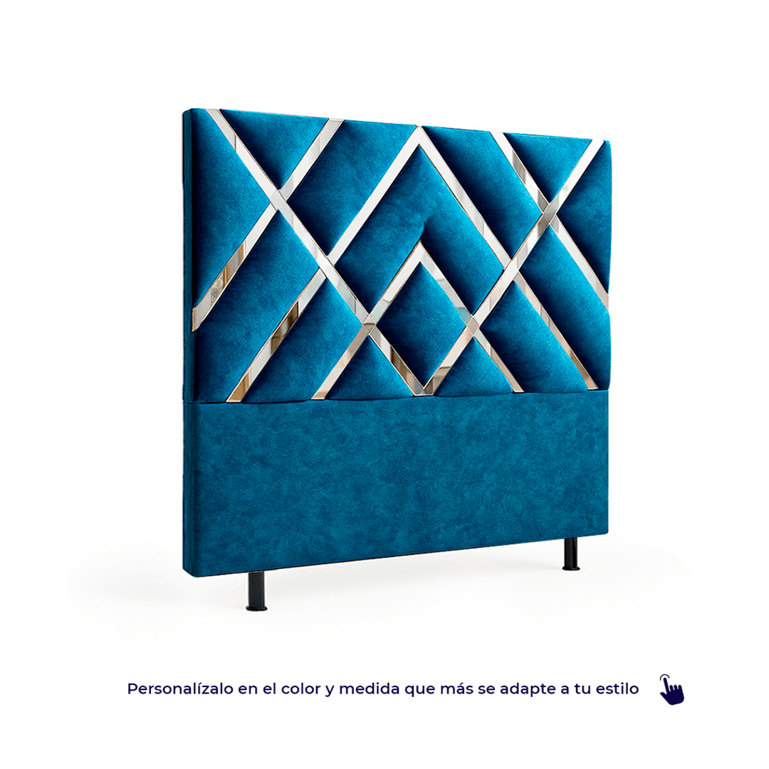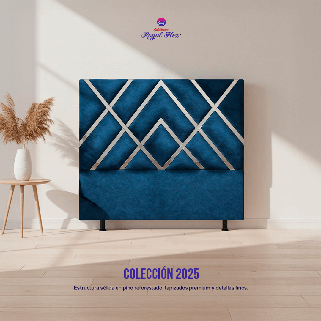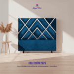 El espaldar Imperial destaca por su diseño geométrico de estilo premium, formado por líneas diagonales y figuras en espejo que crean un patrón moderno y sofisticado. Su composición aporta elegancia visual y un toque de lujo contemporáneo a cualquier habitación.