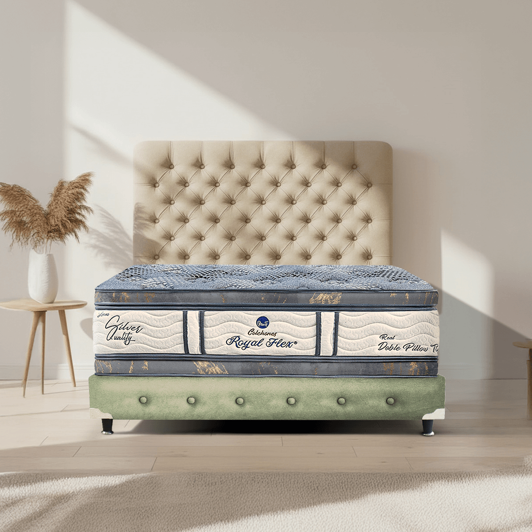 El espaldar Rombos Exclusivo destaca por su elegante capitoneado profundo, formado por un patrón de rombos con botones que aporta un look lujoso, clásico y atemporal. Su diseño detallado crea un efecto visual sofisticado ideal para habitaciones con estilo refinado.