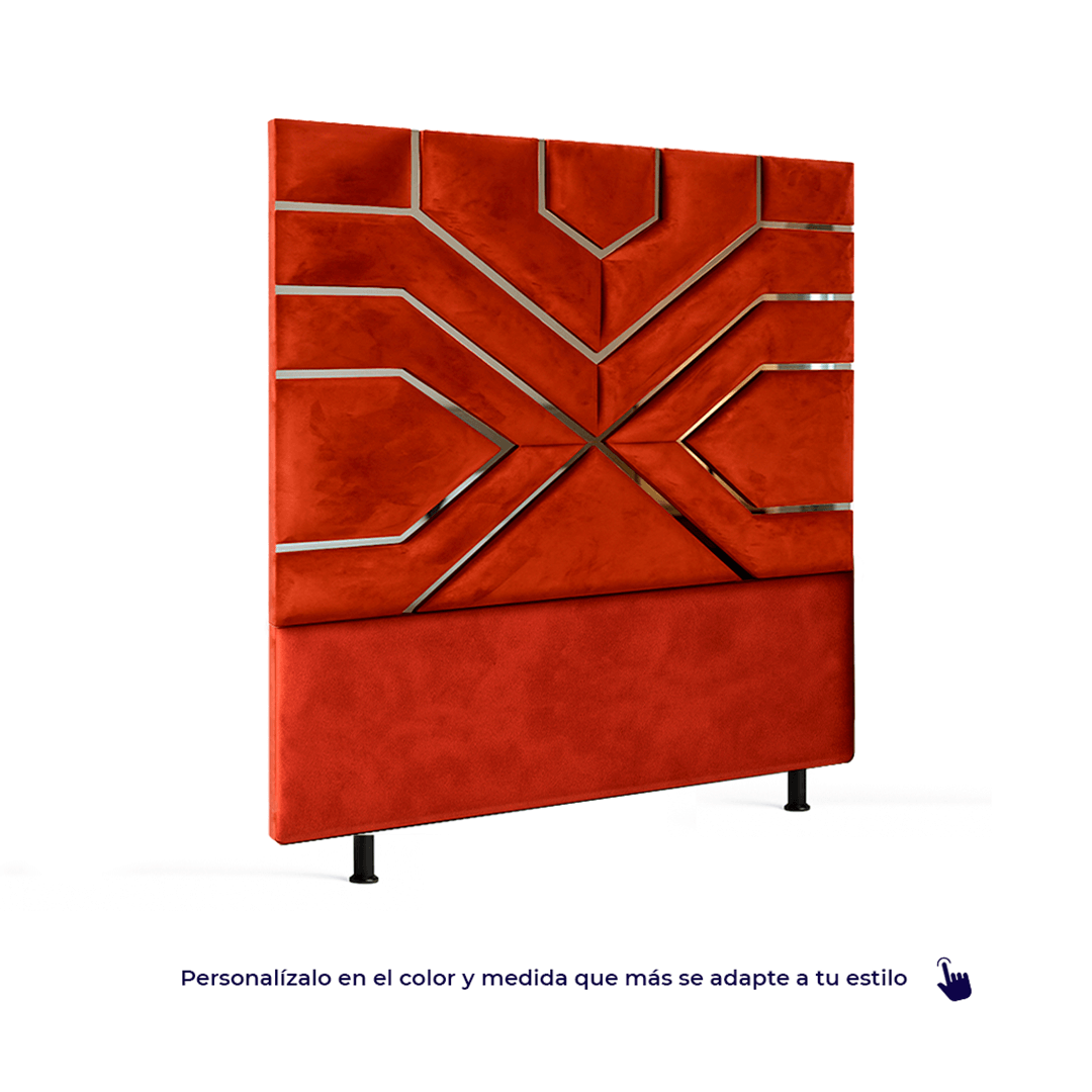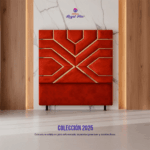 El espaldar Viena destaca por su diseño simétrico y elegante, con paneles geométricos que se unen con finos detalles en espejo, creando un look moderno y sofisticado.